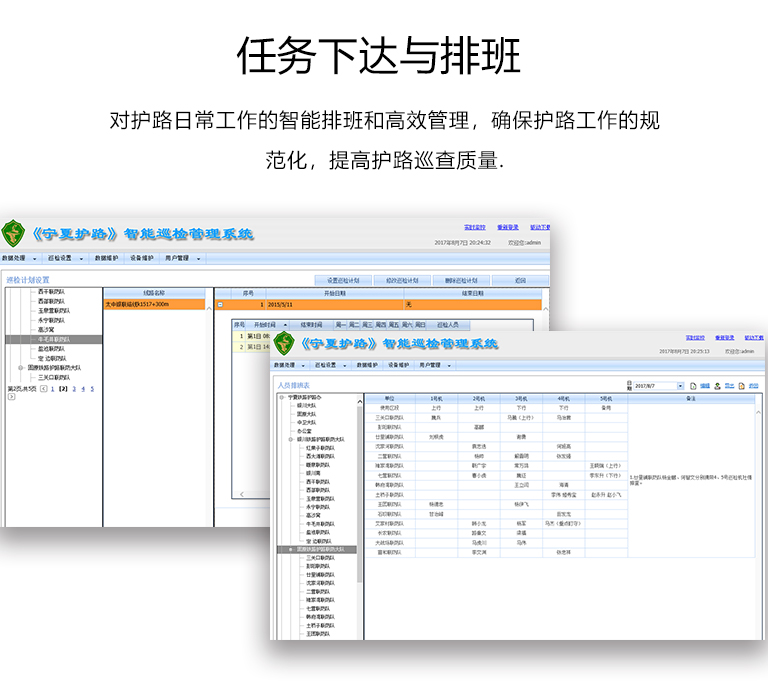 對(duì)護(hù)路日常工作的智能排班和高效管理,確保護(hù)路工作的規(guī)范化,提高護(hù)路巡查質(zhì)量。